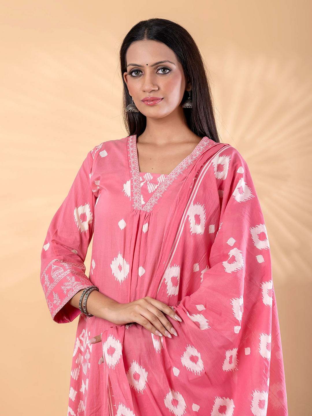 Anarkali style cotton fabric pink color kurta and bottom with dupatta