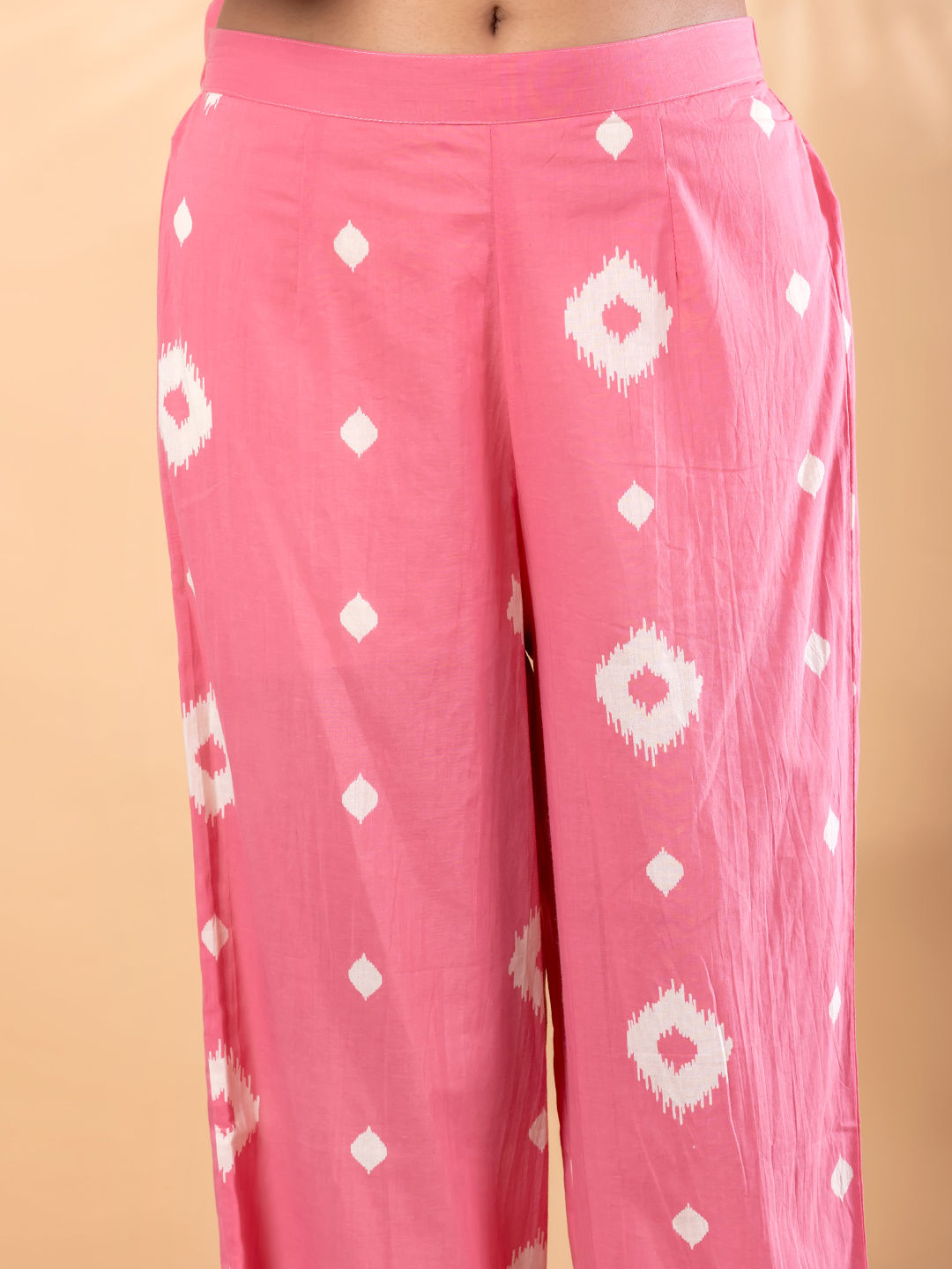 Anarkali Style Cotton Fabric Pink Color Printed Kurti With Palazzo And Dupatta