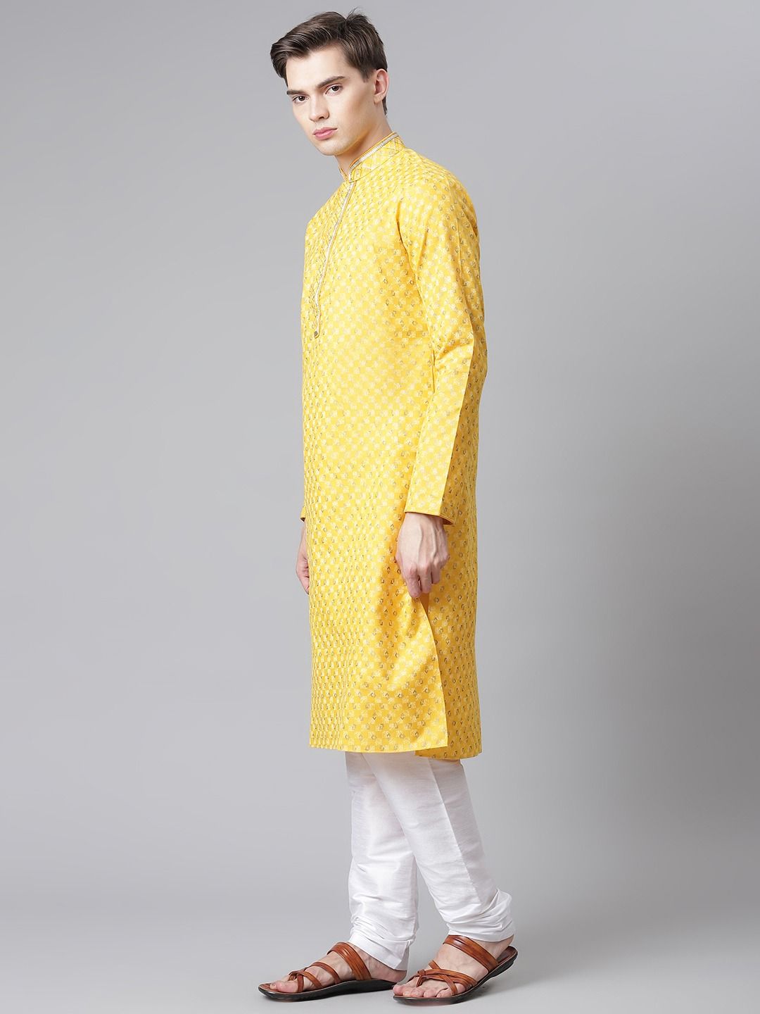 Cotton blend fabric yellow color stitched kurta & churidar pyjama