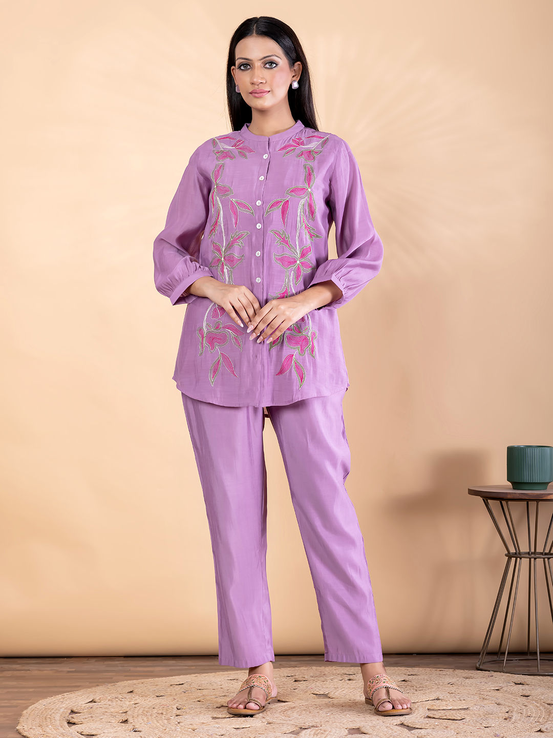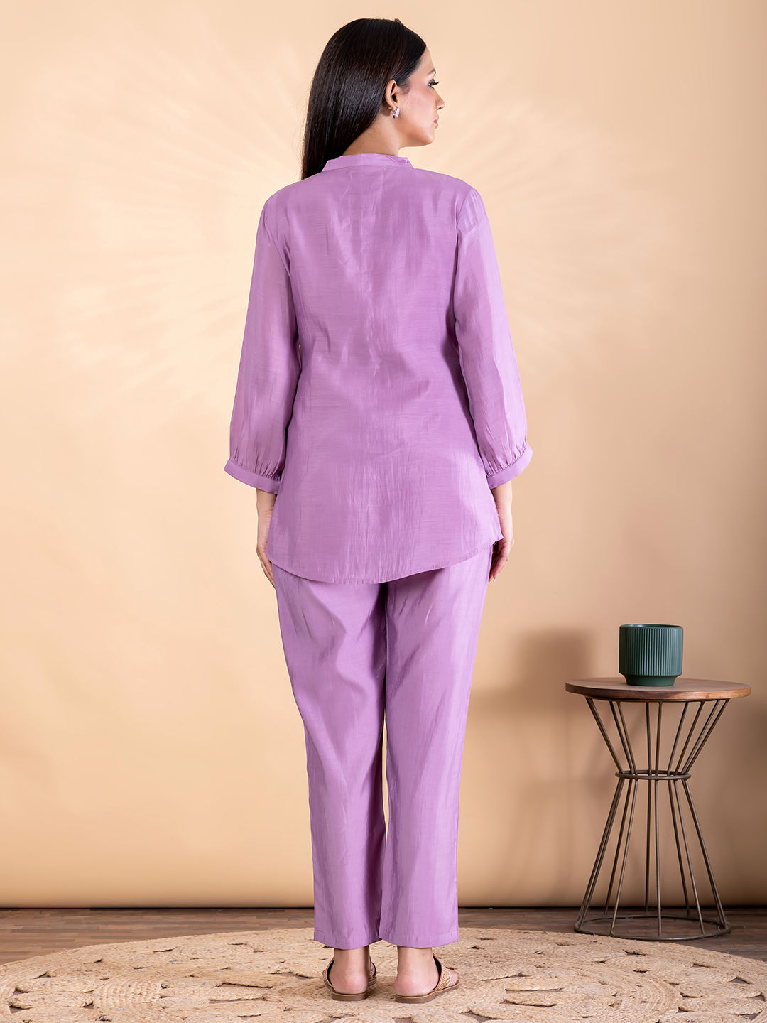 Curved style chanderi silk fabric mauve color co-ord set
