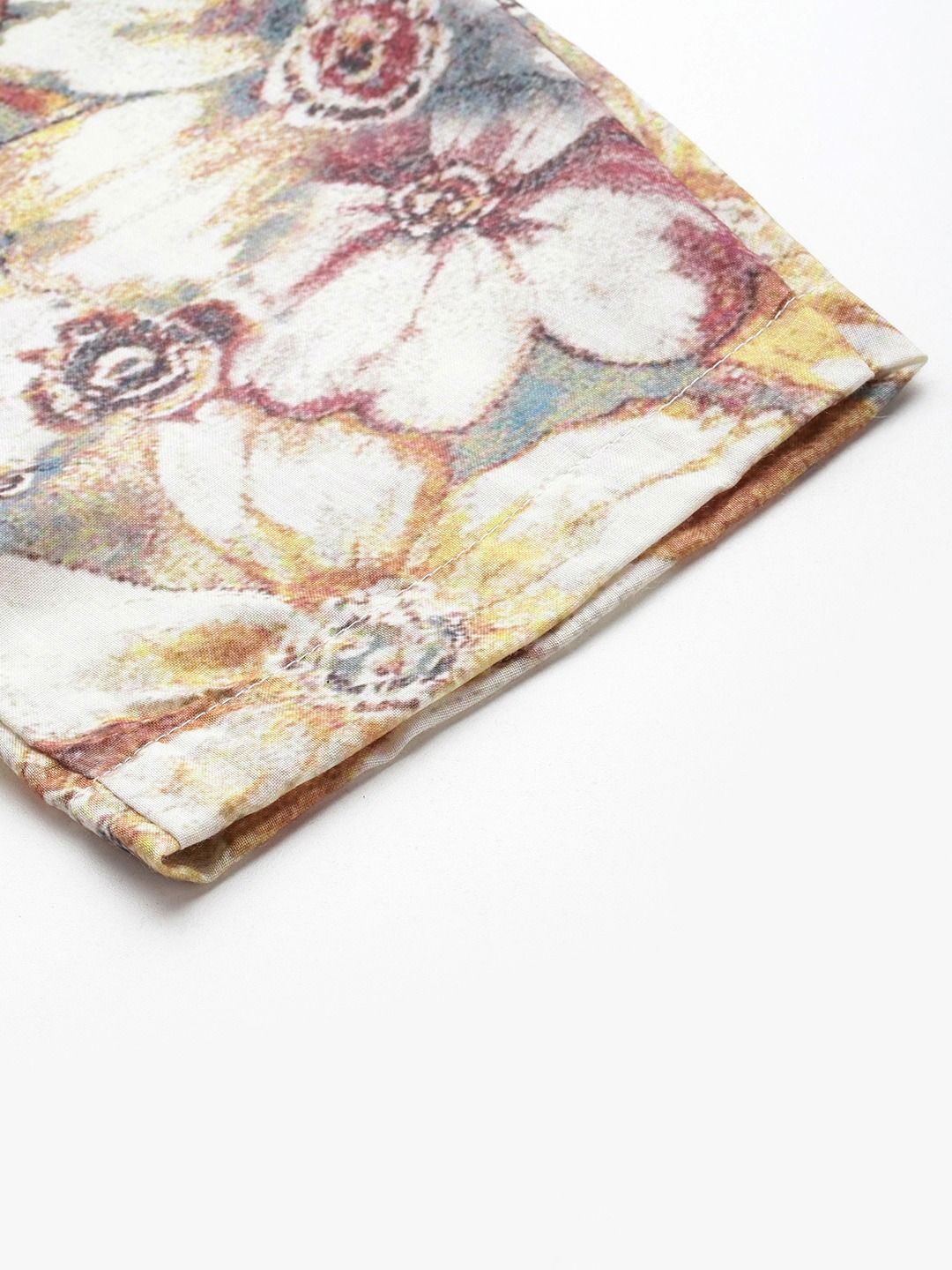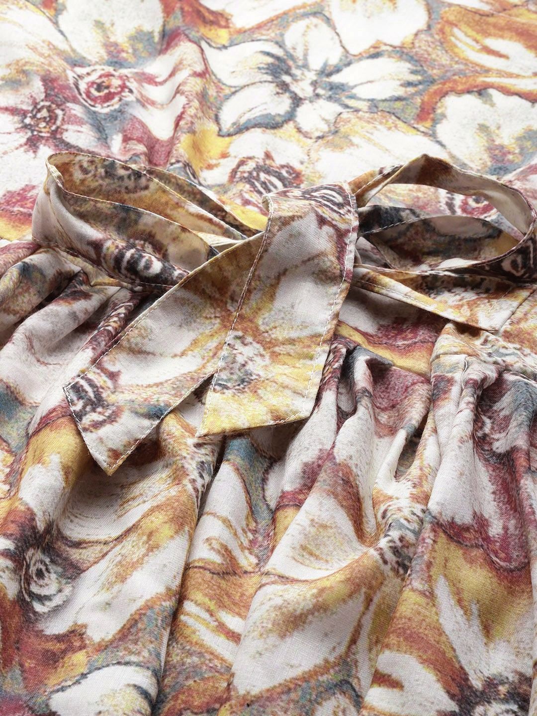 Women Frock style Cotton fabric Beige color Printed Top with with palazzo