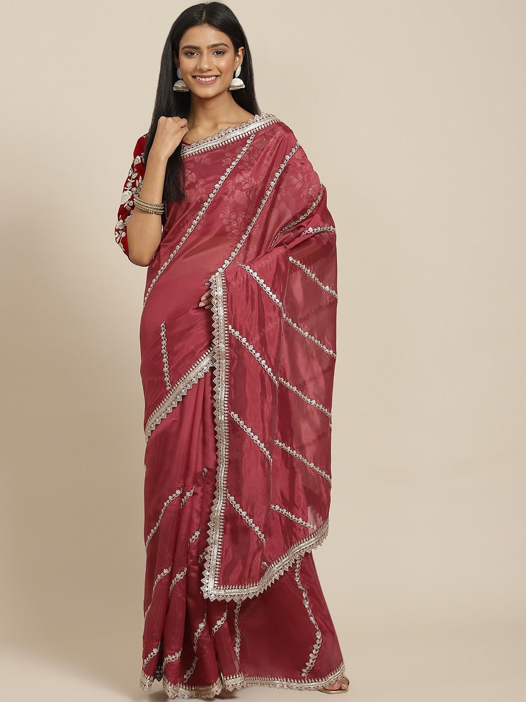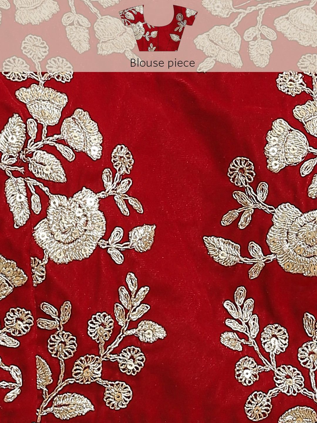 Silk Fabric Red Color Saree with Blouse piece in Zari & Embroidery, Sequence Work