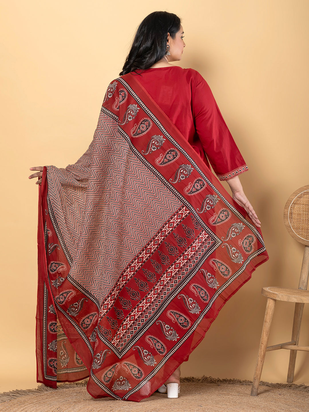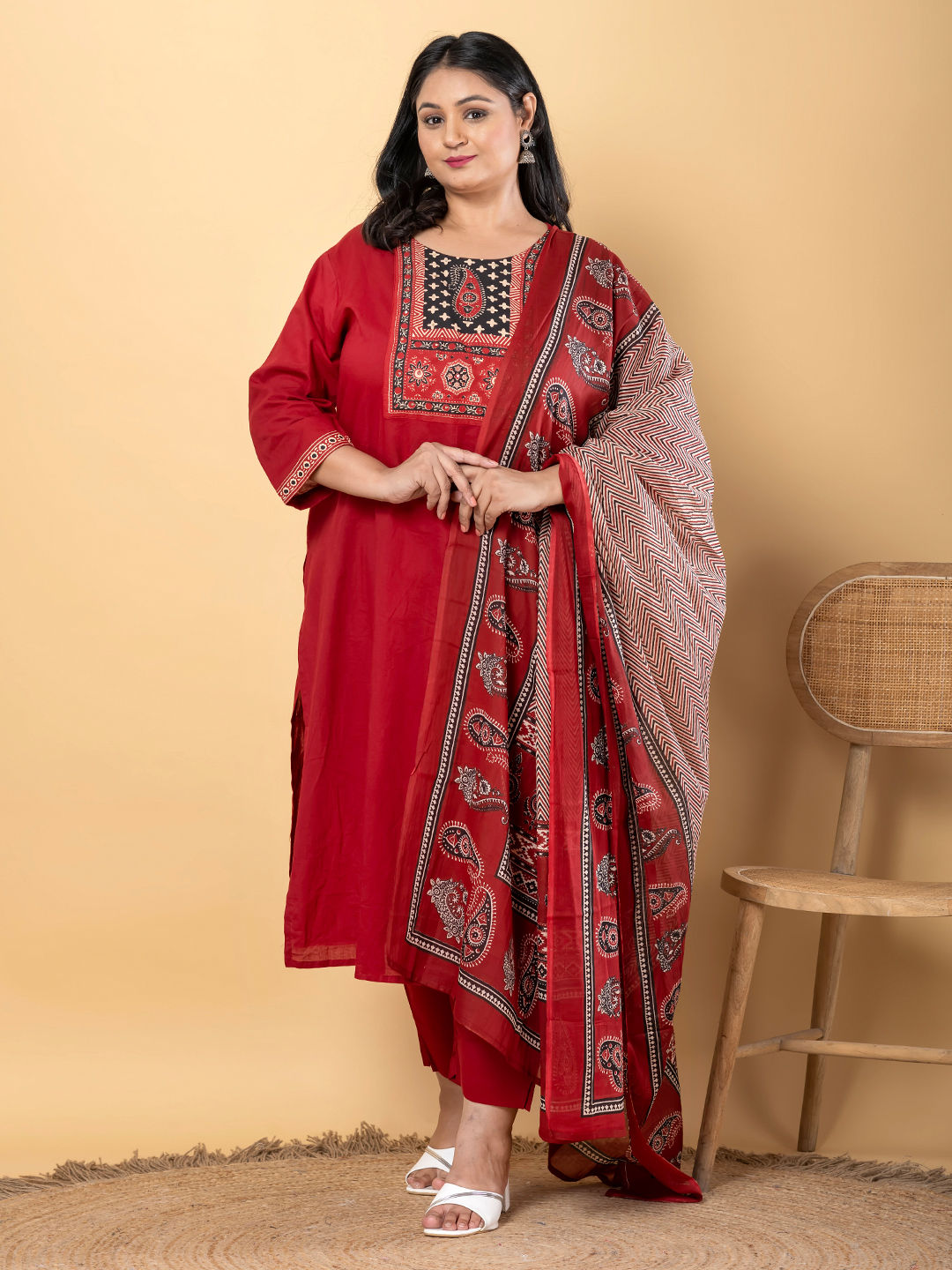 Straight style cotton fabric maroon color kurta and bottom with dupatta