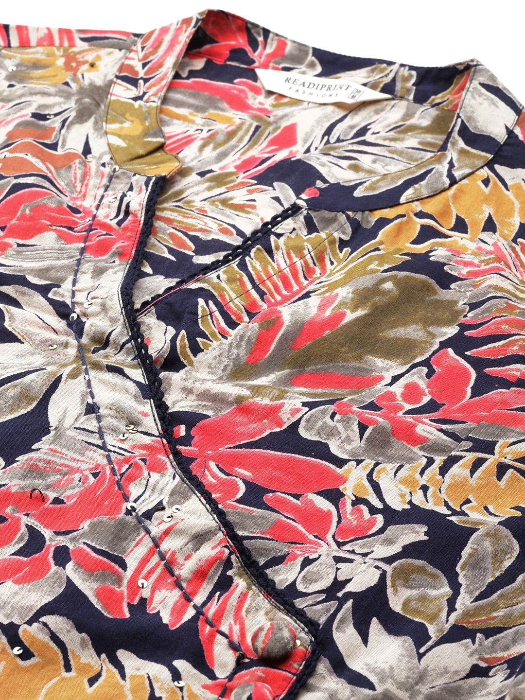 Straight style Cotton fabric Navy Blue color Printed kurti with Palazzo