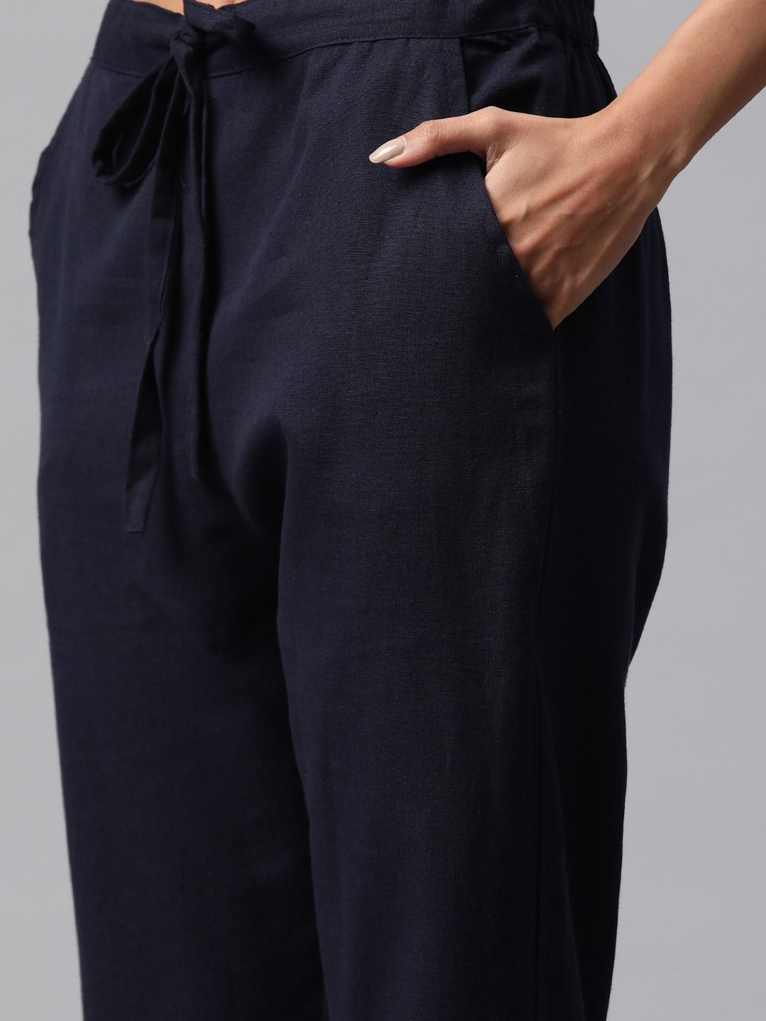 Straight style cotton fabric navy blue color kurta and bottom
