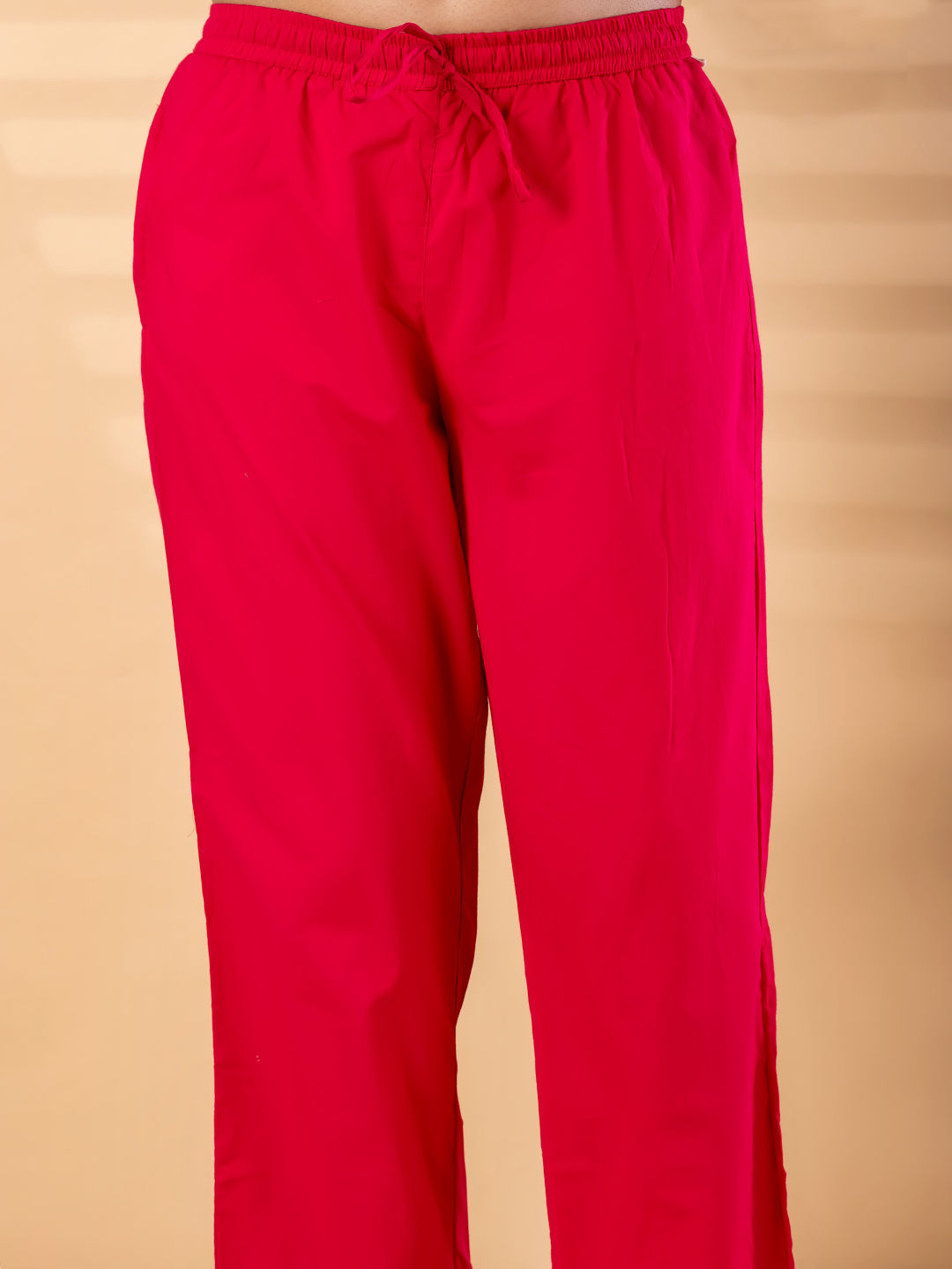Straight style cotton fabric pink color kurta and bottom with dupatta