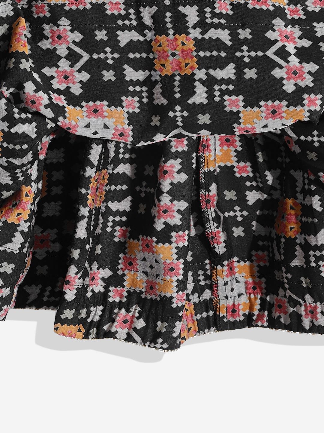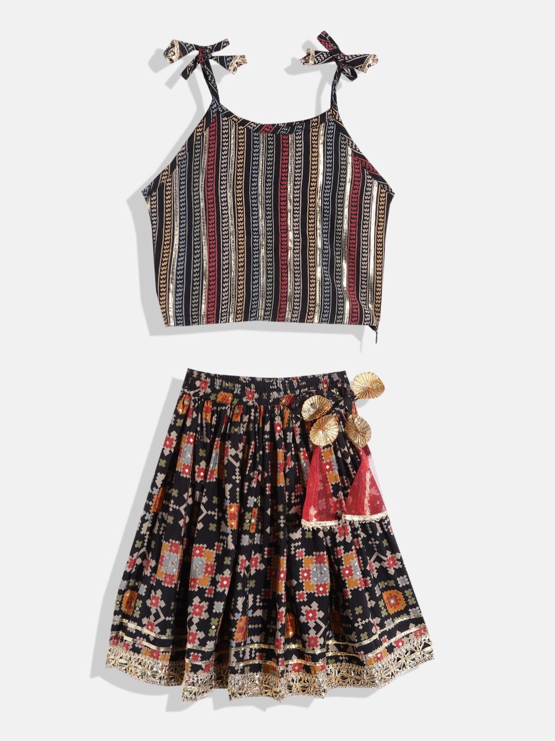 Straight style Crep Fabric Black color printed Choli and lehenga with Gotta lace work
